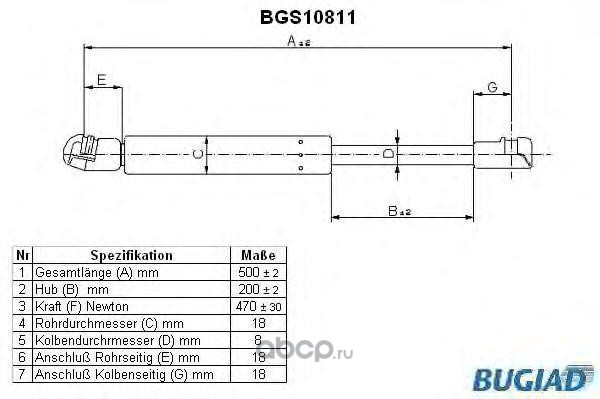 | BUGIAD | BGS10811 | Упругий элемент, крышка багажника / помещения для груза | ||