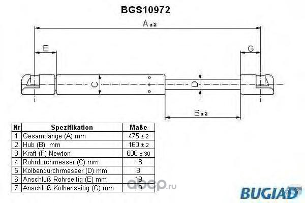 | BUGIAD | BGS10972 | Упругий элемент, крышка багажника / помещения для груза | ||