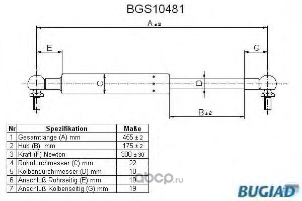 | BUGIAD | BGS10481 | Упругий элемент, крышка багажника / помещения для груза | ||