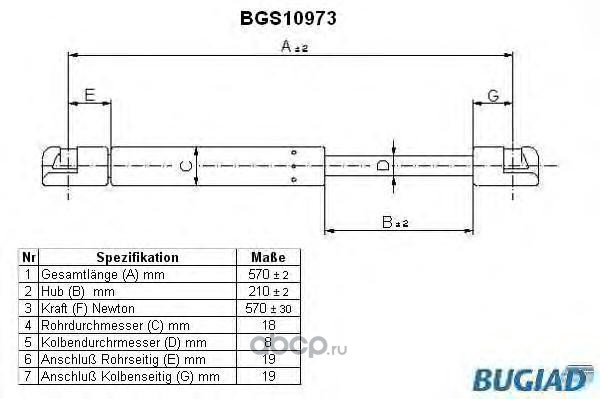| BUGIAD | BGS10973 | Упругий элемент, крышка багажника / помещения для груза | ||