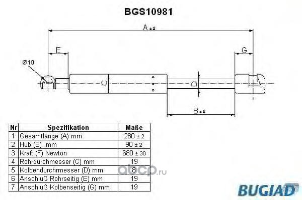 | BUGIAD | BGS10981 | Упругий элемент, крышка багажника / помещения для груза | ||