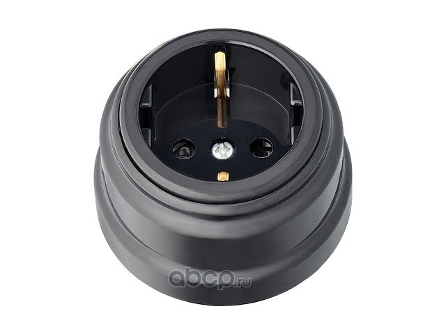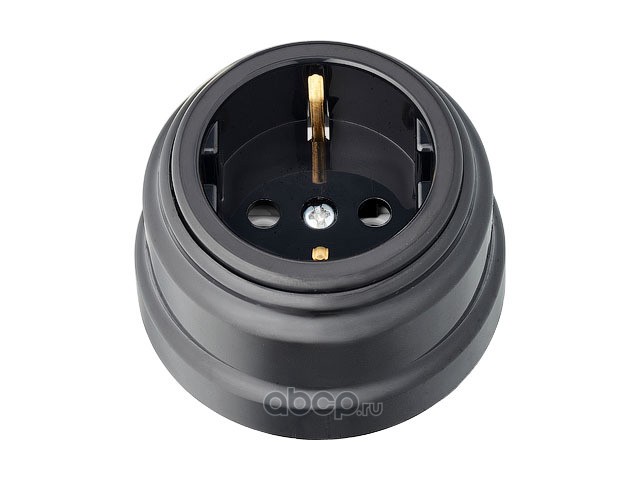 Розетка 1-ая (открытая, с/з, з/ш) черная, Ретро, (без монтажной панели)