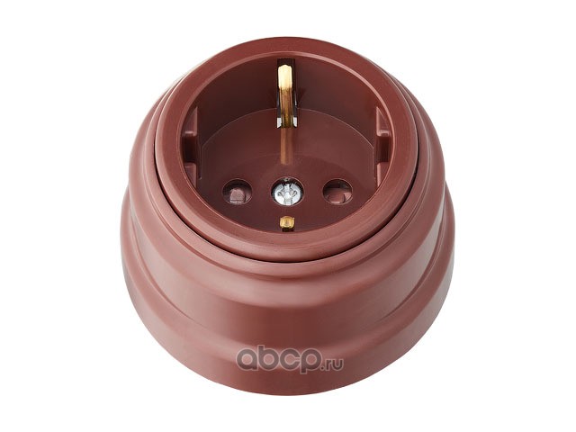 Розетка 1-ая (открытая, б/з, з/ш) коричневая, Ретро, (без монтажной панели)