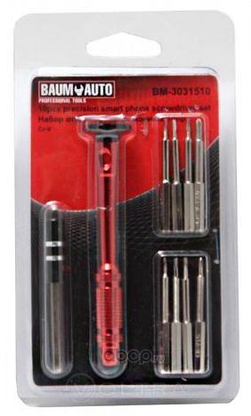 | BaumAuto | BM3031510 | Набор отверток ювелирных, для точных работ:PH1.0,1.5Y3.0TS0.8,1.2 T4,T5 с держателем бит 10 предметов | ||