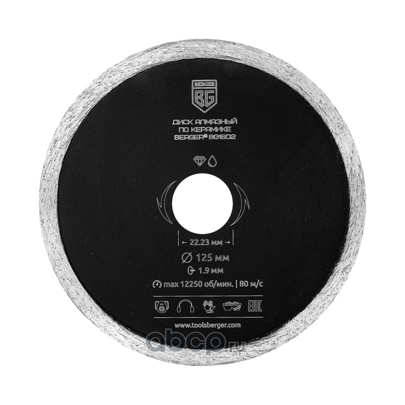 | Berger | BG1602 | Диск алмазный отрезной по керамике (несегментный, 125x1.9x22.23 мм) BERGER BG1602 | ||