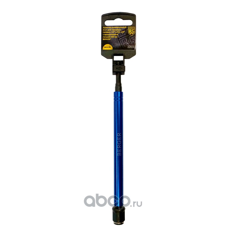 Berger | BG2190 | Адаптер универсальный 2в1 для торцевых головок 1/2" и бит 1/4" с вращ. гильзой 200 мм BERGER BG2190 | ||