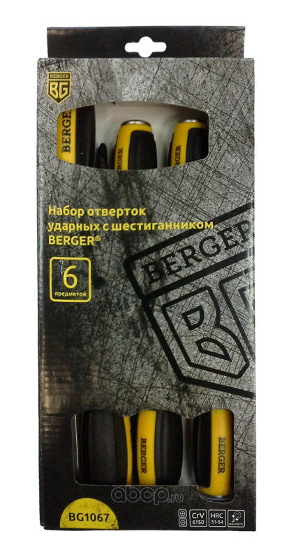| Berger | BG1067 | Набор отверток ударных с шестигранником 6 предметов BERGER | ||