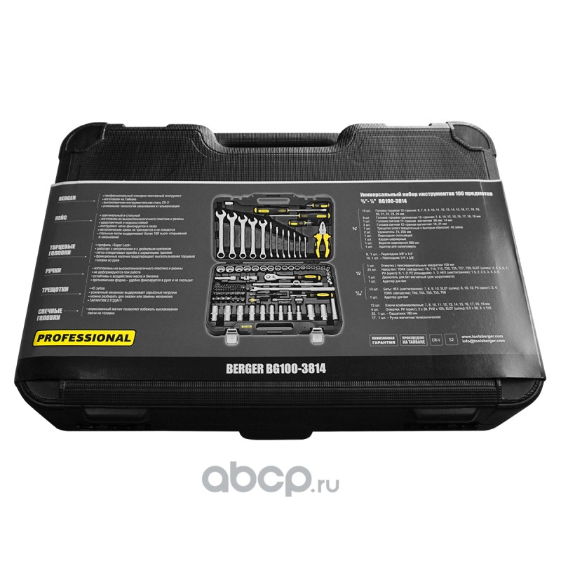 | Berger | BG1003814 | Универсальный набор инструментов BERGER 100 предметов 3/8” «ЛАНДАУ» BG100-3814 | ||