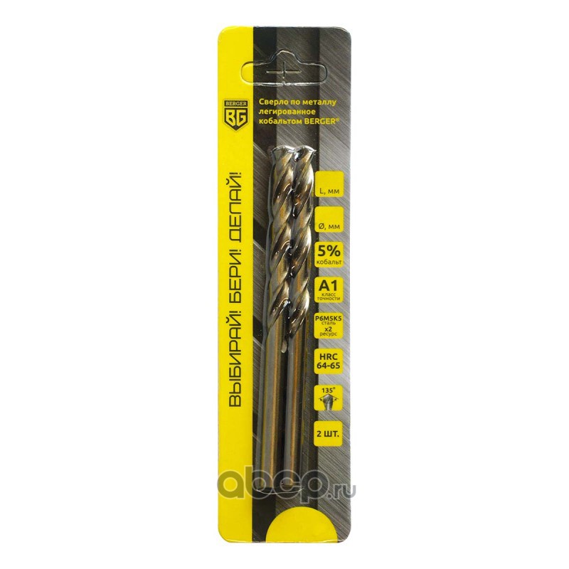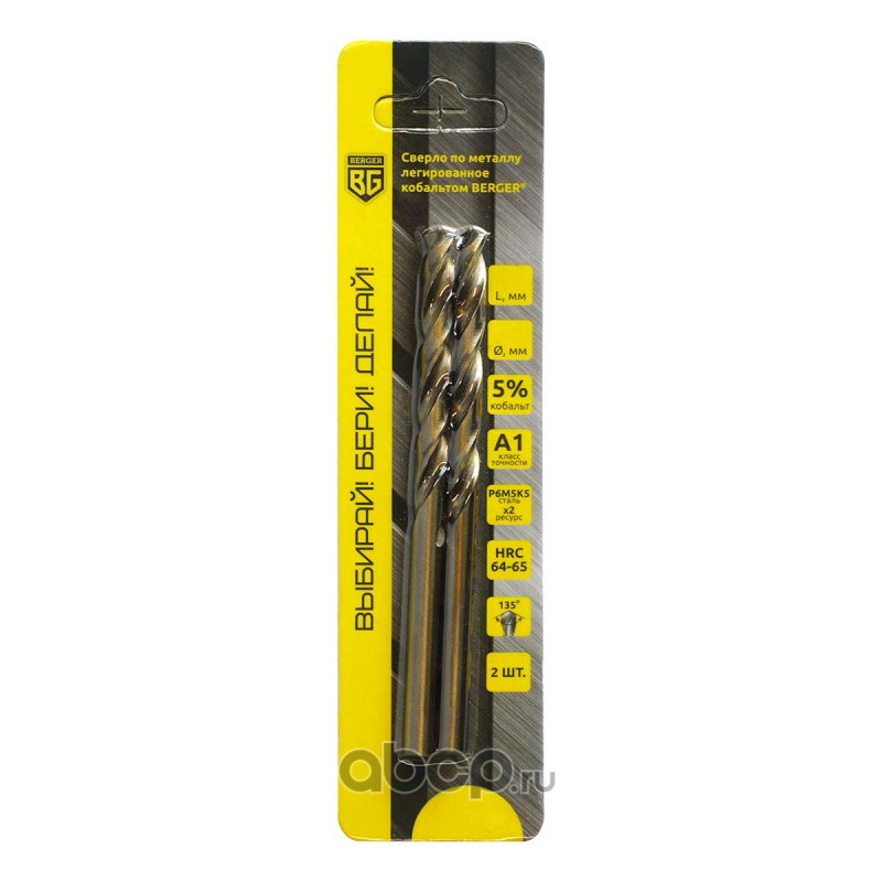 | Berger | BG1455 | Сверло по металлу легированное кобальтом 5х86 мм (2 шт.) BERGER BG1455 | ||