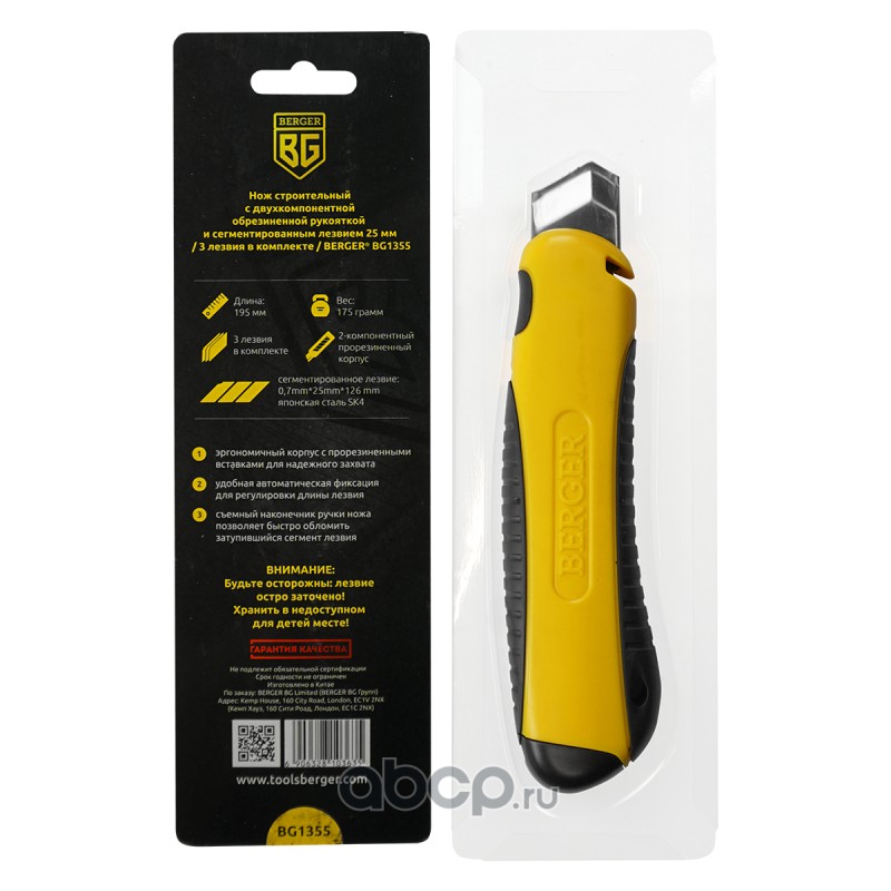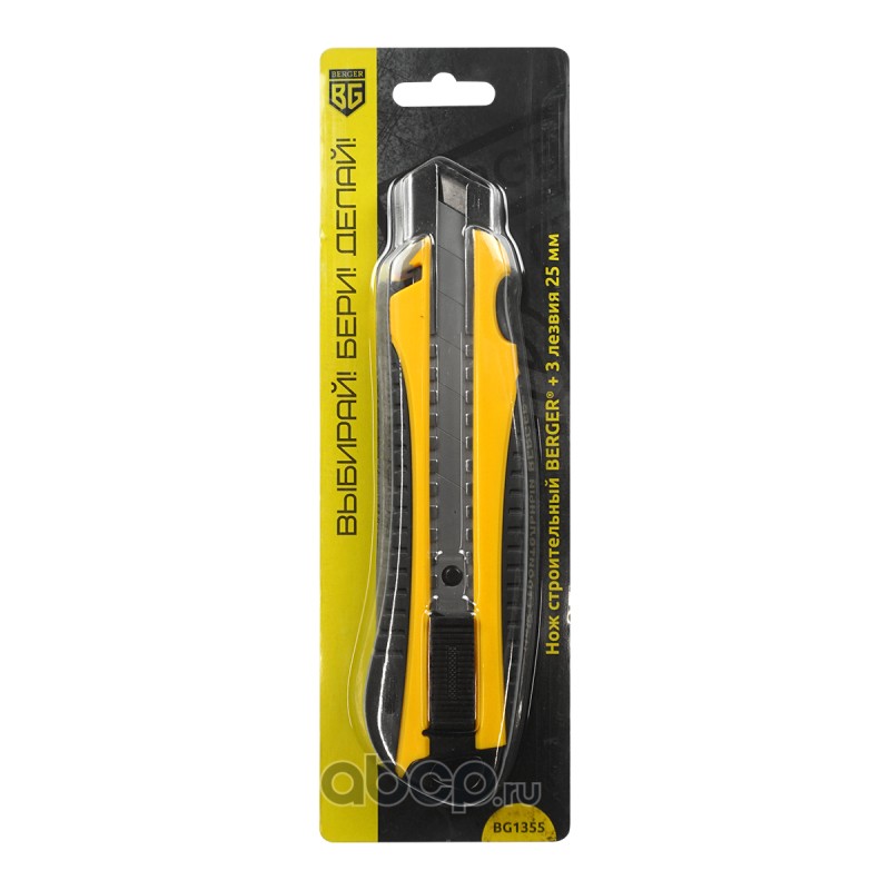 | Berger | BG1355 | Нож строительный с двухкомпонентной обрезиненной рукояткой и сегментированным лезвием 25мм (3 лезвия в комплекте) BERGER BG1355 | ||