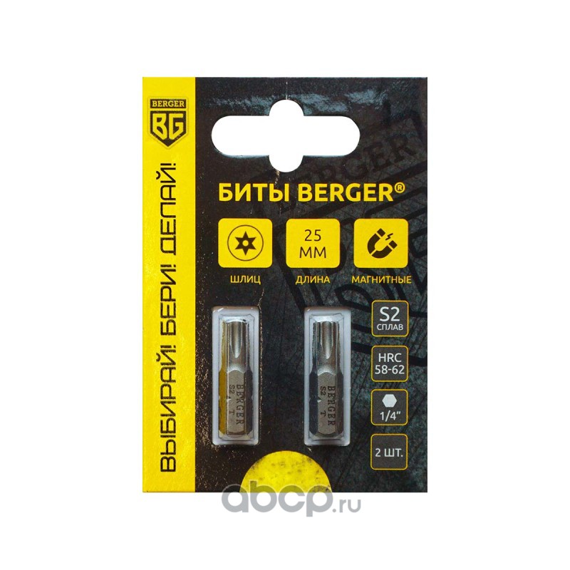 | Berger | BG2395 | Биты магнитные TORX c отверстием T40Hx25мм, 2 шт., S2 BERGER BG2395 | ||