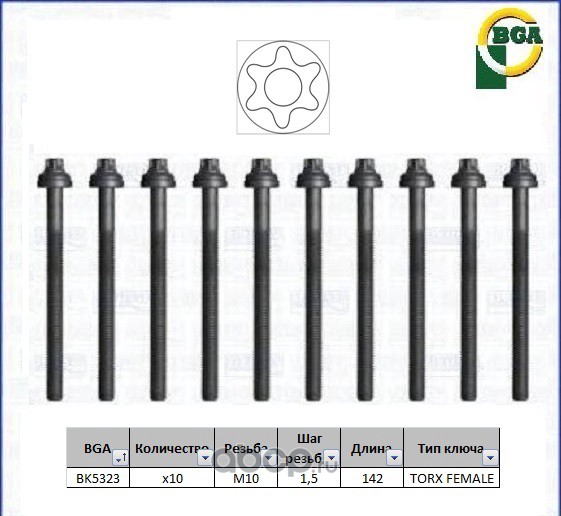 | Bga | BK5323 | Болты ГБЦ, комплект | ||