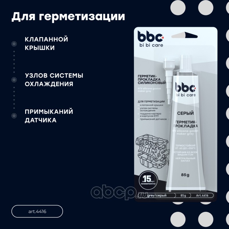 | BiBiCare | 4416 | Герметик-прокладка силиконовый серый | ||