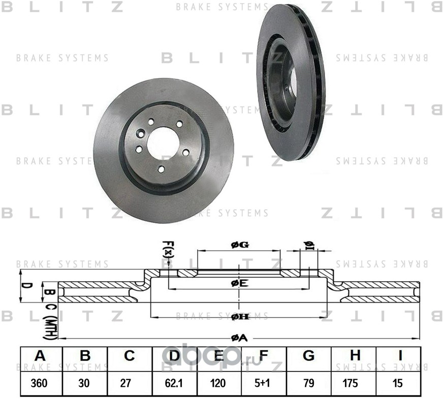 | Blitz | BS0363 | Диск тормозной передний вентилируемый | ||