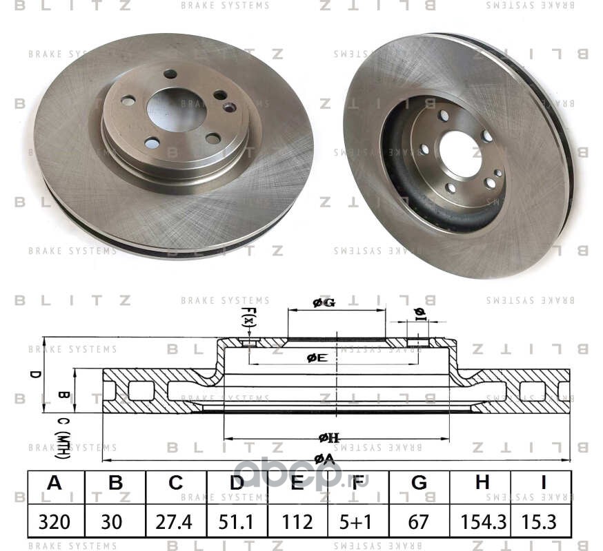| Blitz | BS0595 | Диск тормозной передний вентилируемый |