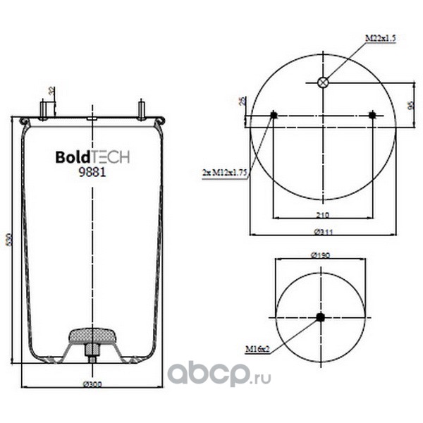 | BoldTech | 9881MP | Пневморессора (881 MB P30) металлический стакан | ||