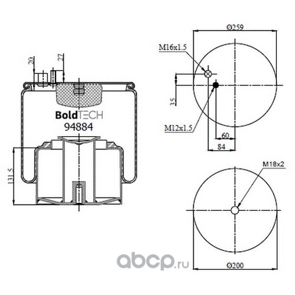 | BoldTech | 94884MP6 | Пневморессора (4884 N1 P06) металлический стакан | ||