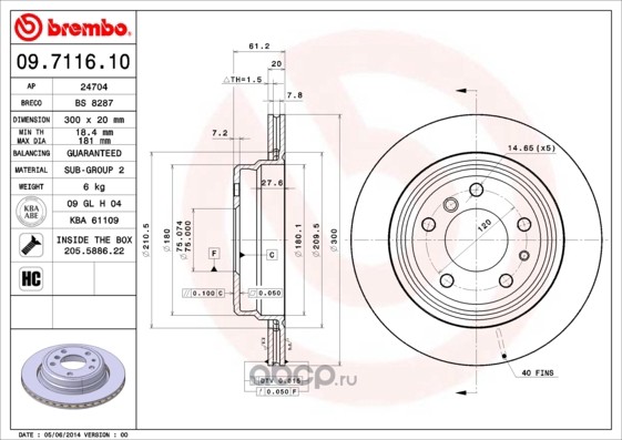 | Brembo | 09711610 | Тормозной диск | ||