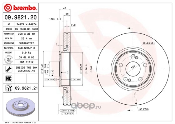 | Brembo | 09982120 | Тормозной диск | ||