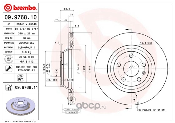 | Brembo | 09976810 | Тормозной диск | ||