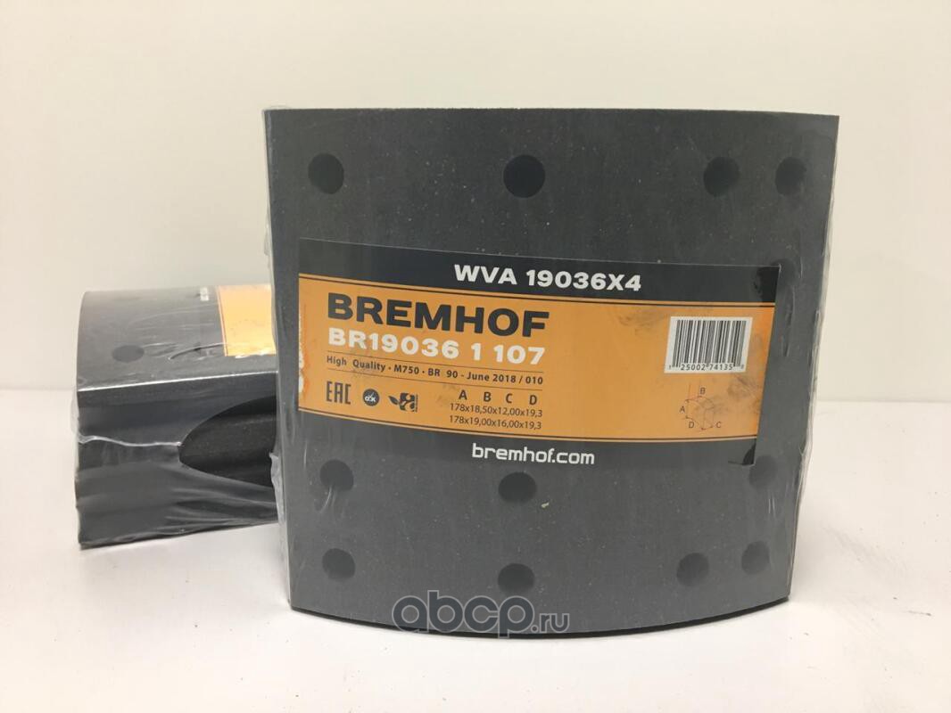 | Bremhof | 190361107 | ТОРМОЗНЫЕ НАКЛАДКИ HD (419x178; 1-й РЕМ.(96 отв.) 8 шт (без закл) | ||