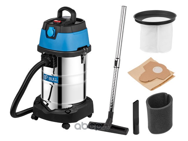 | Bull | 15030129 | Пылесос BULL AS 3001 + аксессуары (1400 Вт, 30 л, класс: L, очистка: мануальная, автовключение, выду |