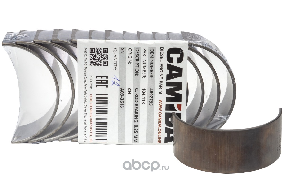 Вкладыш коленвала шатунный верхний ремонт. (0.25 мм) (CAMIDA, Китай)