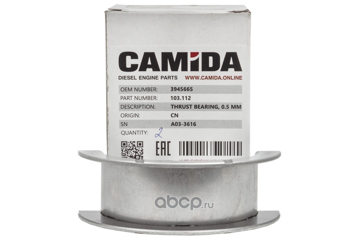 Вкладыш коленвала упорный нижжний ремонт. (0.5 мм) (CAMIDA, Китай)