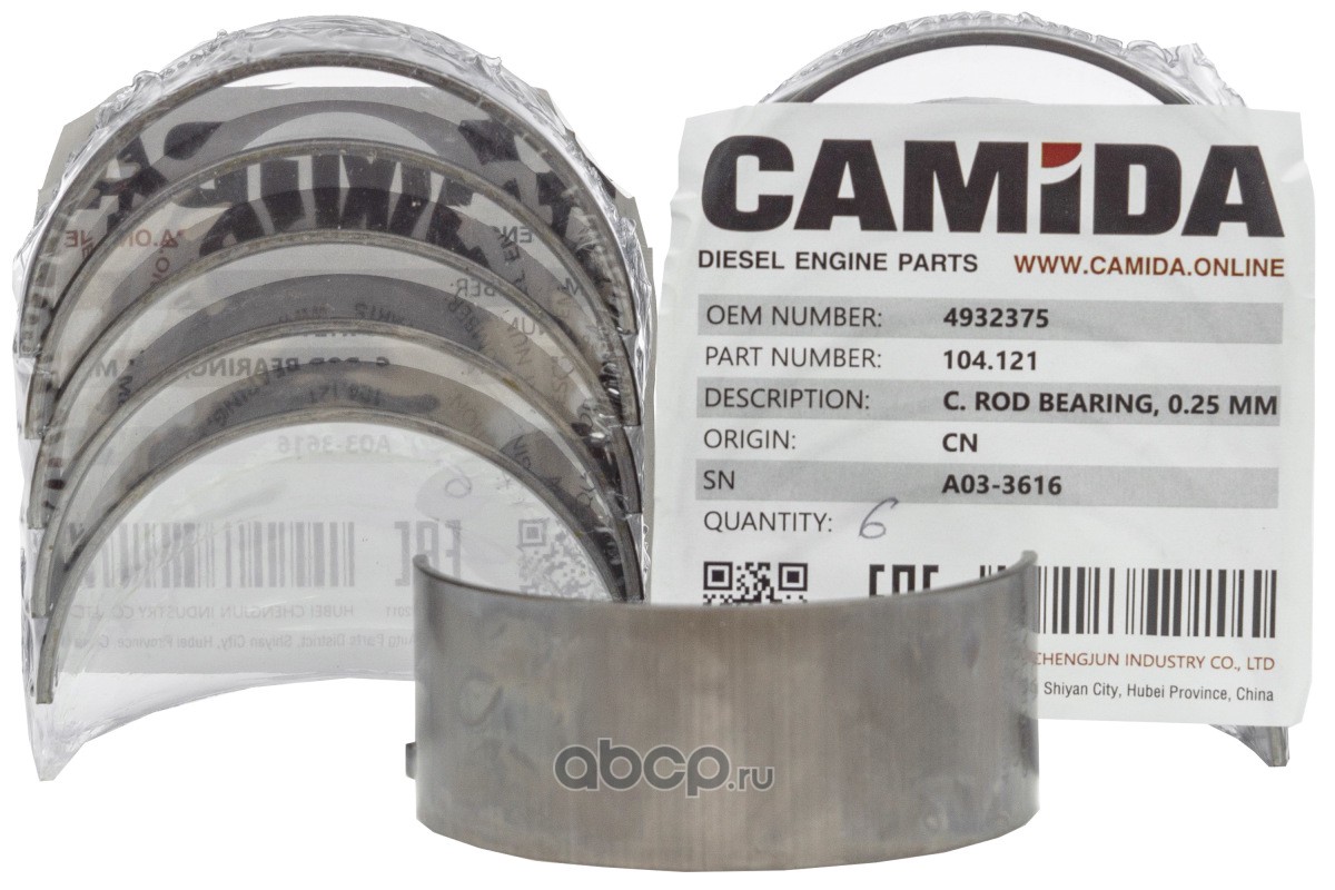 Вкладыш коленвала шатунный верхний стандарт нового образца (CAMIDA, Китай)
