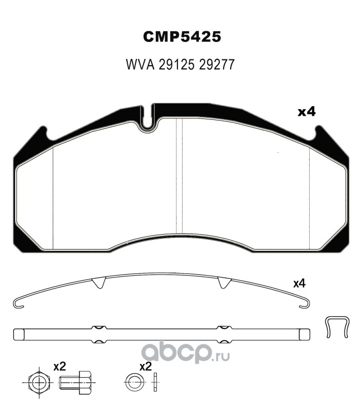 CAMPAR AUTOPARTS | CMP6579 | Накладка тормозной колодки MAN, M-B 410*163 номинал, компл (4+4), с набором заклепок (8*20=72шт.) | |