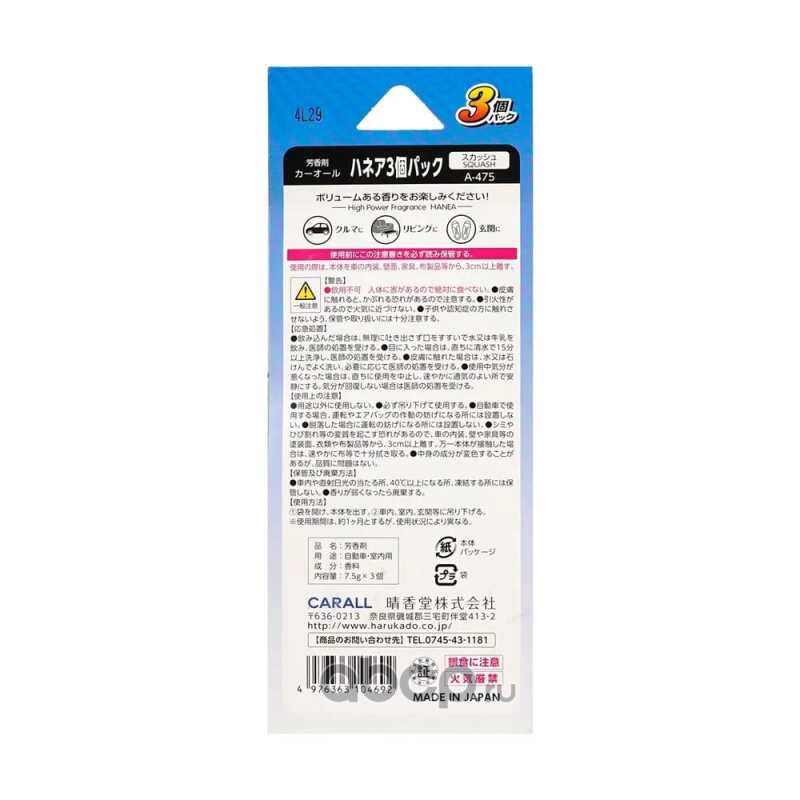 | CARALL | A475 | Carall Hanea A-475 (squash - 3шт.) освежитель подвесной прессованный картон (Made in Japan) | ||
