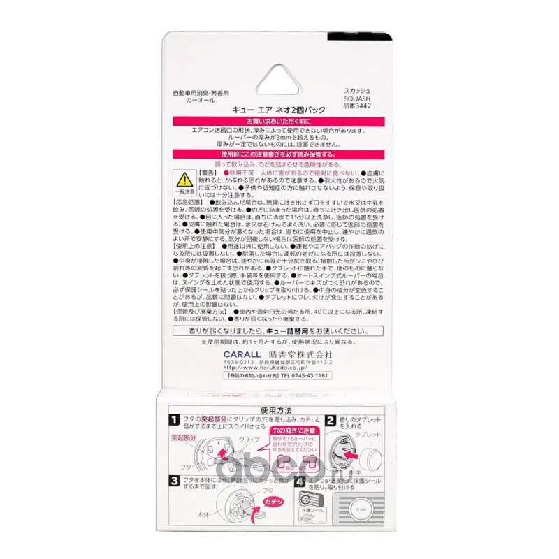 | CARALL | 3442 | Carall Cue Air Neo 3442 (squash) освежитель меловой в решетку обдува (Made in Japan) | ||