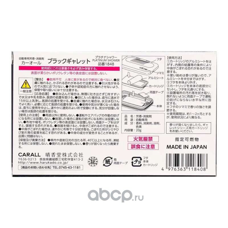 | CARALL | 1848 | Carall Gallet Black 1848 (platinum shower) освежитель фетровый на торпедо (Made in Japan) |
