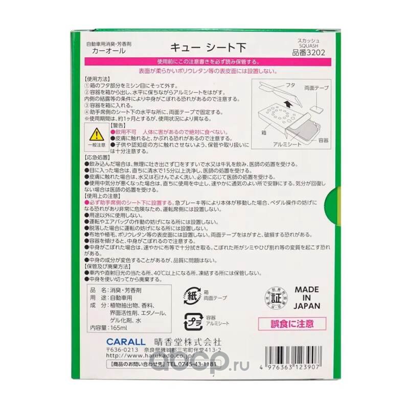 | CARALL | 3202 | Carall Cue Seat Shita 3202 (squash) освежитель гелевый под сидение (Made in Japan) | ||
