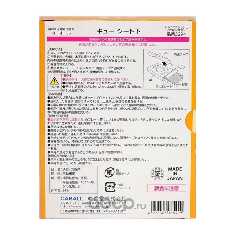 | CARALL | 3294 | Carall Cue Seat Shita 3294 (citrus fresh) освежитель гелевый под сидение (Made in Japan) | ||