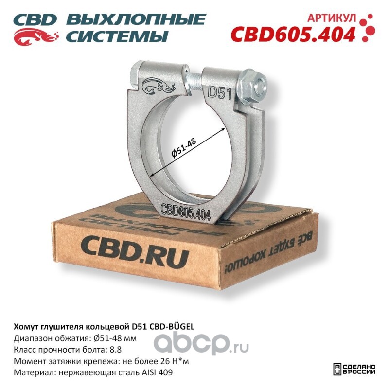 | CBD | CBD605404 | Хомут глушителя кольцевой CBD-BÜGEL D51. Нержавеющий AISI 409. CBD605.404 | ||
