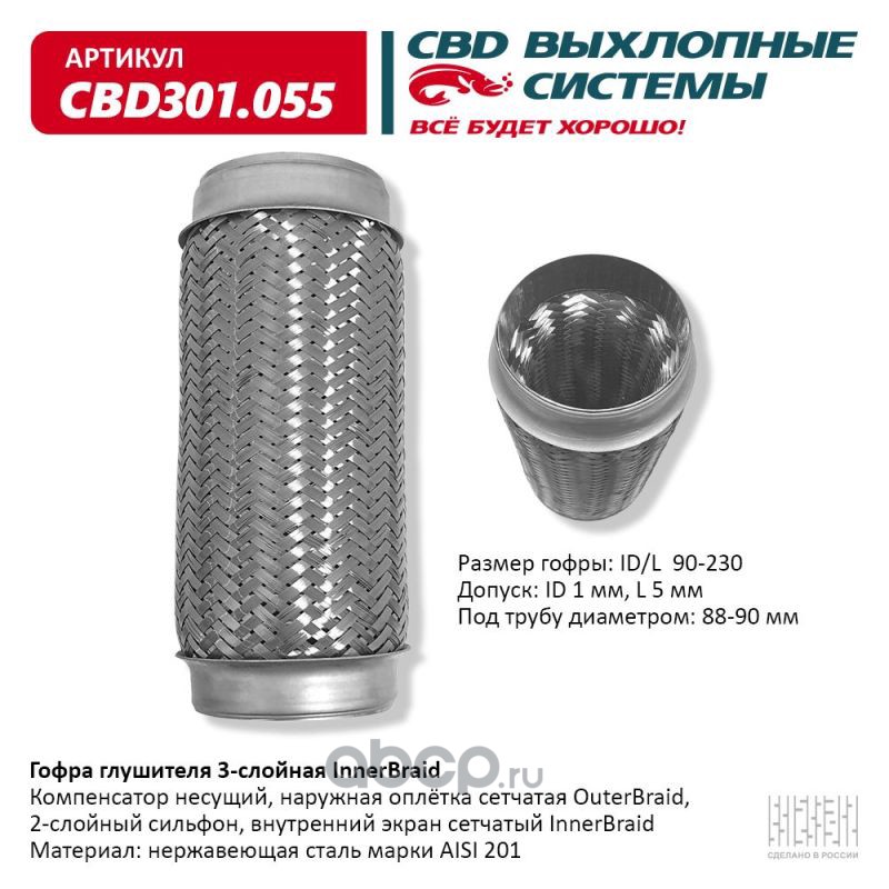 Гофра глушителя 3-сл Innerbraid 90-230. CBD301.055