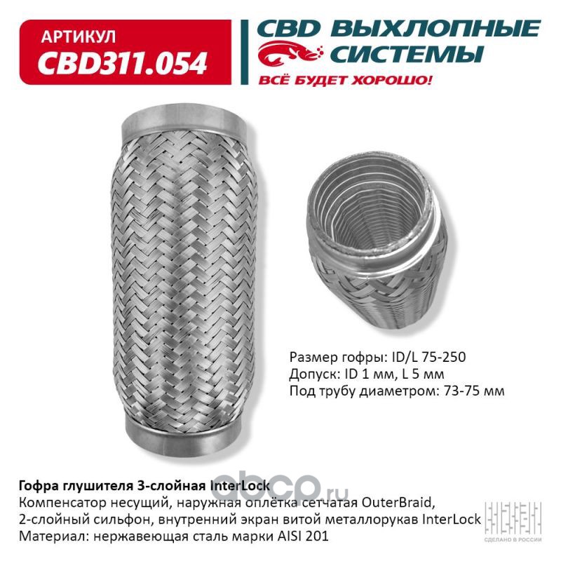 Гофра глушителя 3х-сл InterLock 75-250. CBD311.054