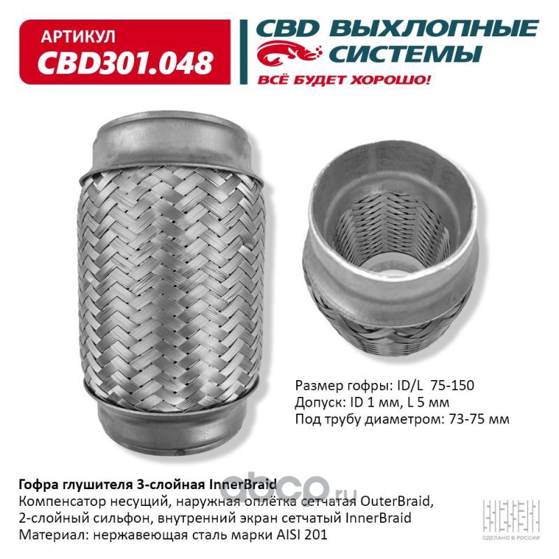 Гофра глушителя 3-сл Innerbraid 75-150. CBD301.048