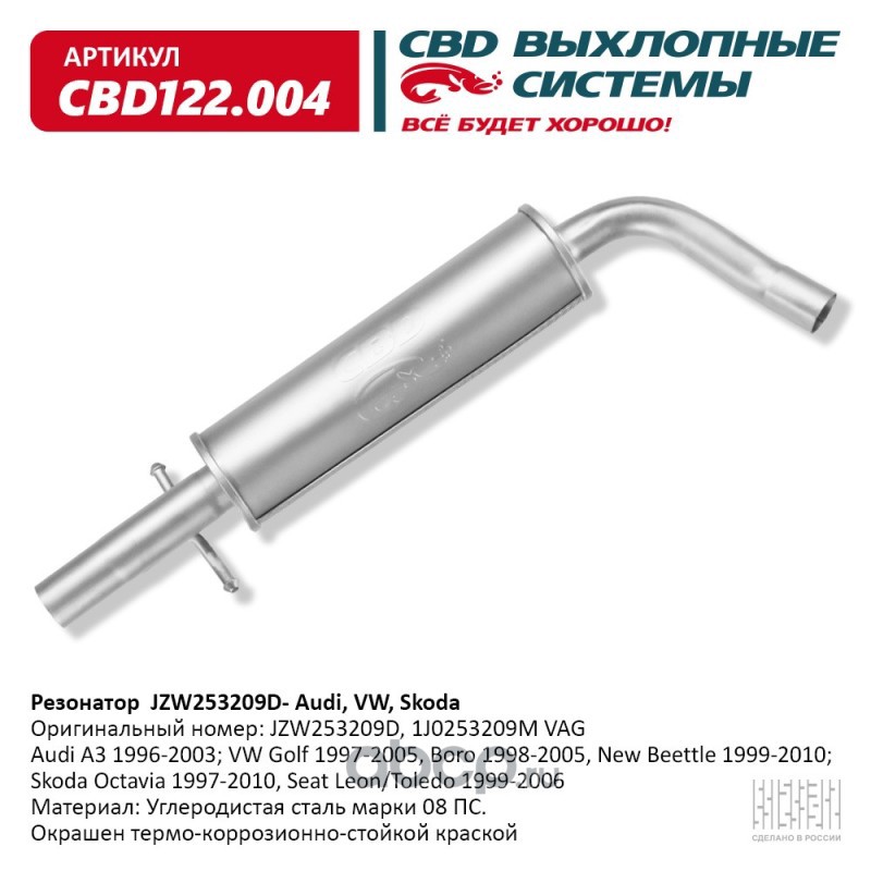 | CBD | CBD122004 | Резонатор JZW253209D Audi, VW, Skodа | ||