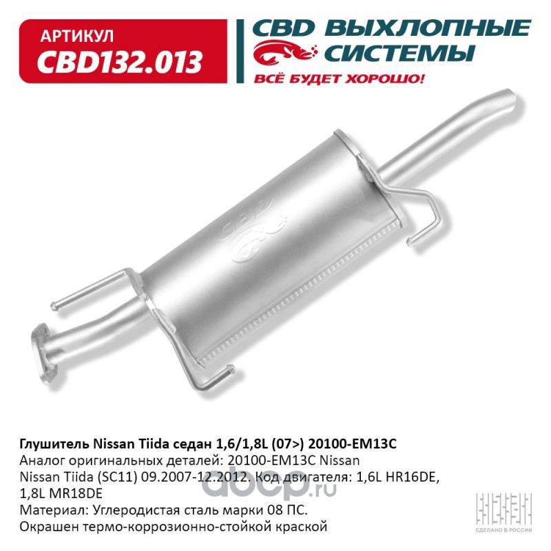 | CBD | CBD132013 | Глушитель Nissan Tiida седан 1,6/1,8L (07>) 20100-EM13C | ||