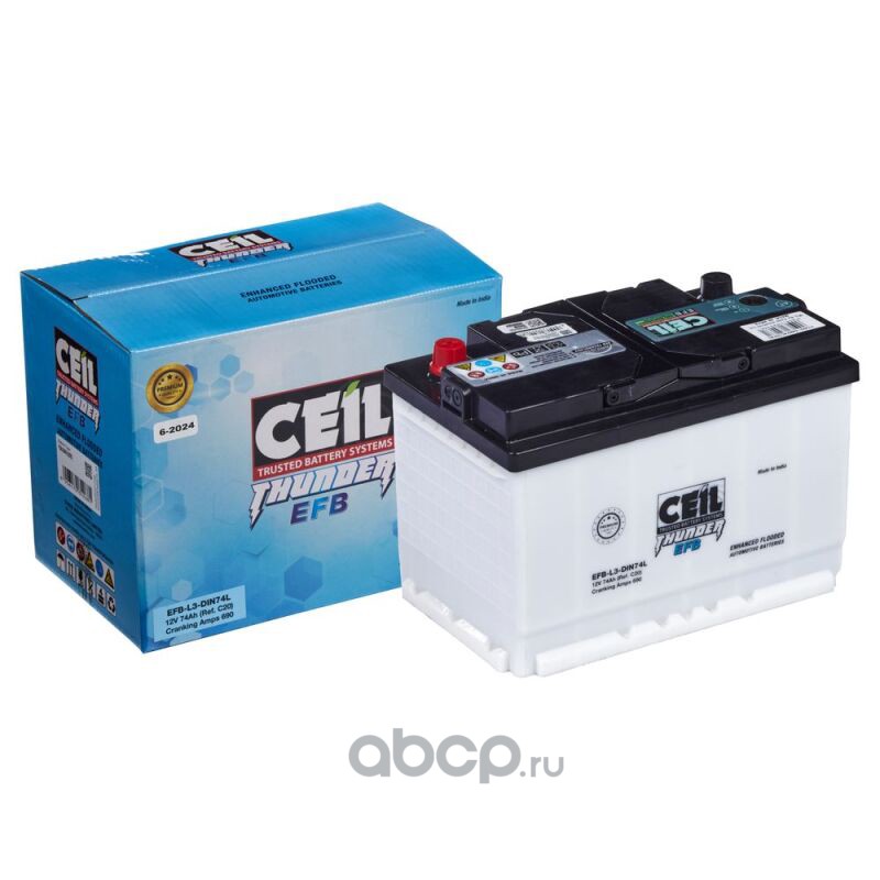 | CEIL | EFBL3DIN74L | Батарея аккумуляторная 74А/ч 690А 12В обратная полярн. стандартные (Европа) клеммы | ||