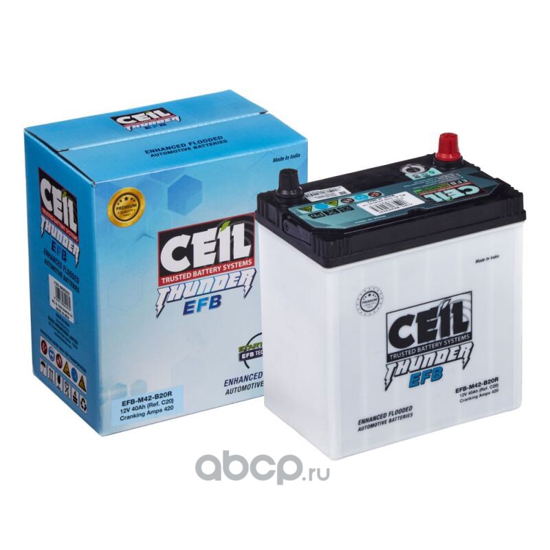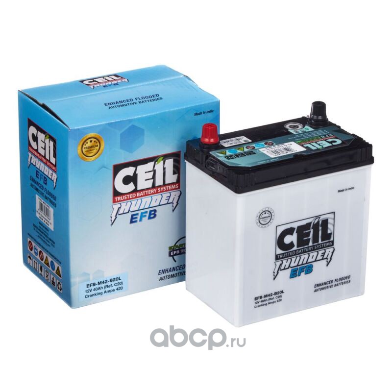 | CEIL | EFBM42B20L | Батарея аккумуляторная 40А/ч 420А 12В обратная полярн. тонкие вынос. (Азия) клеммы | ||