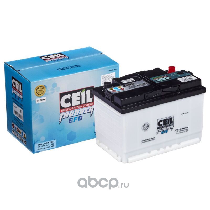 | CEIL | EFBL3DIN74R | Батарея аккумуляторная 74А/ч 690А 12В прямая полярн. стандартные (Европа) клеммы | ||