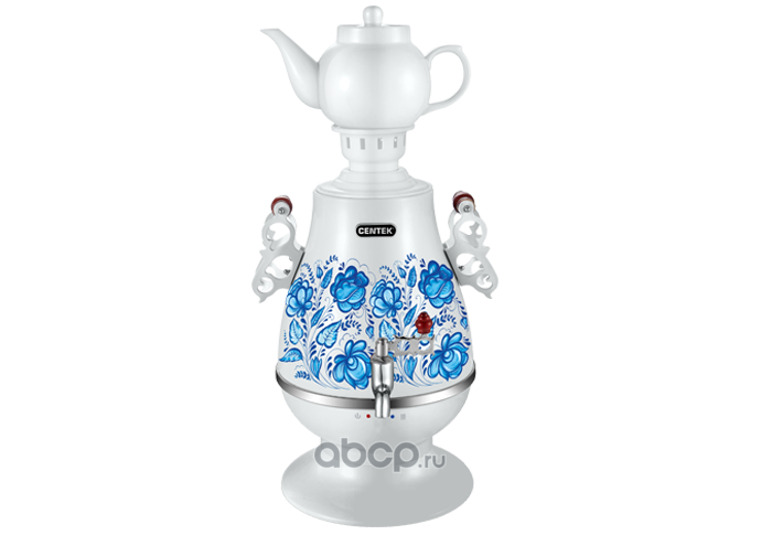 Самовар "Centek" (белый с рисуноком) 4.0л, 2300Вт, поддержка температуры, LED индикатор, керамический заварник