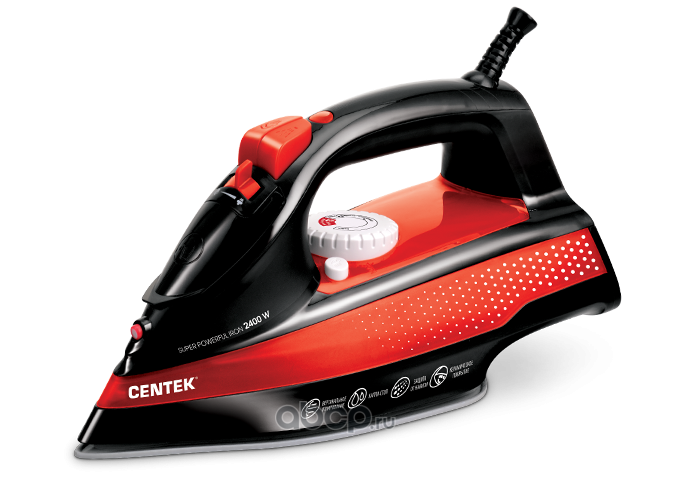 Утюг "Centek" (красный) 2400Вт, керамическая подошва, мощный паровой удар, самоочистка,285мл
