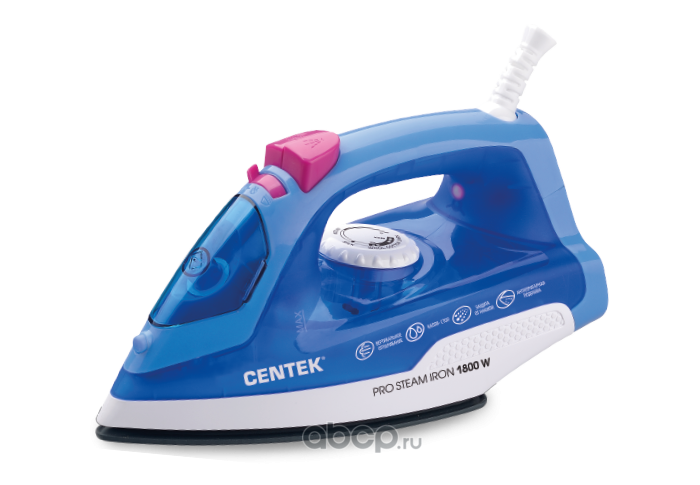 Утюг "Centek" (синий) 1800Вт, керамическая подошва, паровой удар, самоочистка,200мл