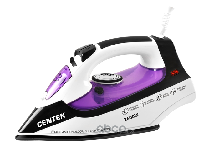 Утюг "Centek" (фиолет) 2600Вт, 350мл., керамика, защита от протечек, антинакипь, самоочистка