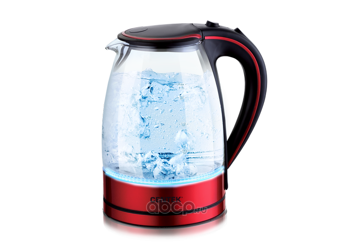 Чайник "Centek" (красный/черный) стекло,1.7л, 2200Вт, встроенная LED подсветка, кнопка