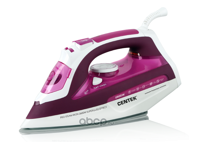 Утюг "Centek" 2600Вт, керамическ подошва, 450мл, паровой удар, самоочистка, капля-стоп